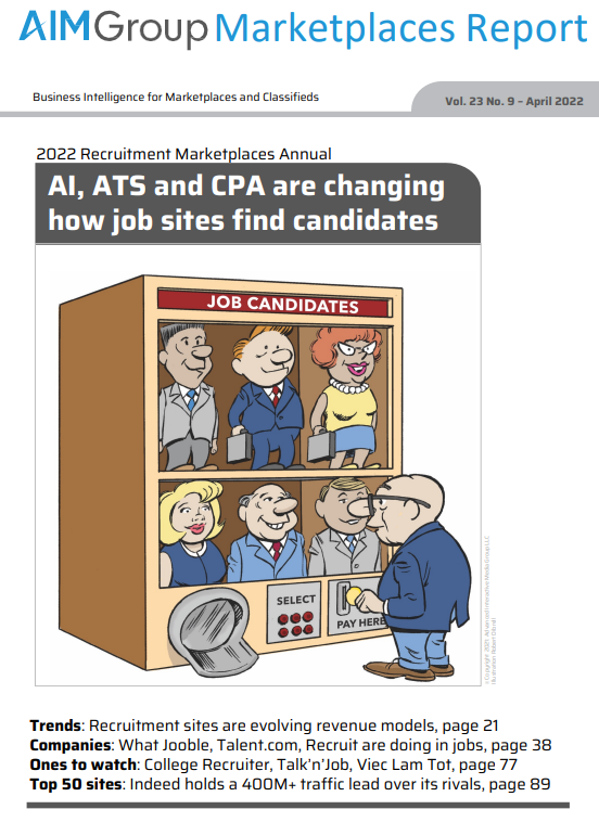 “It’s been an astonishing three years for recruitment marketplaces,” said Peter M. Zollman of the AIM Group. “The speed of change — and new business models like programmatic, cost-per-hire and others — are having a profound impact on companies helping connect people with jobs.”